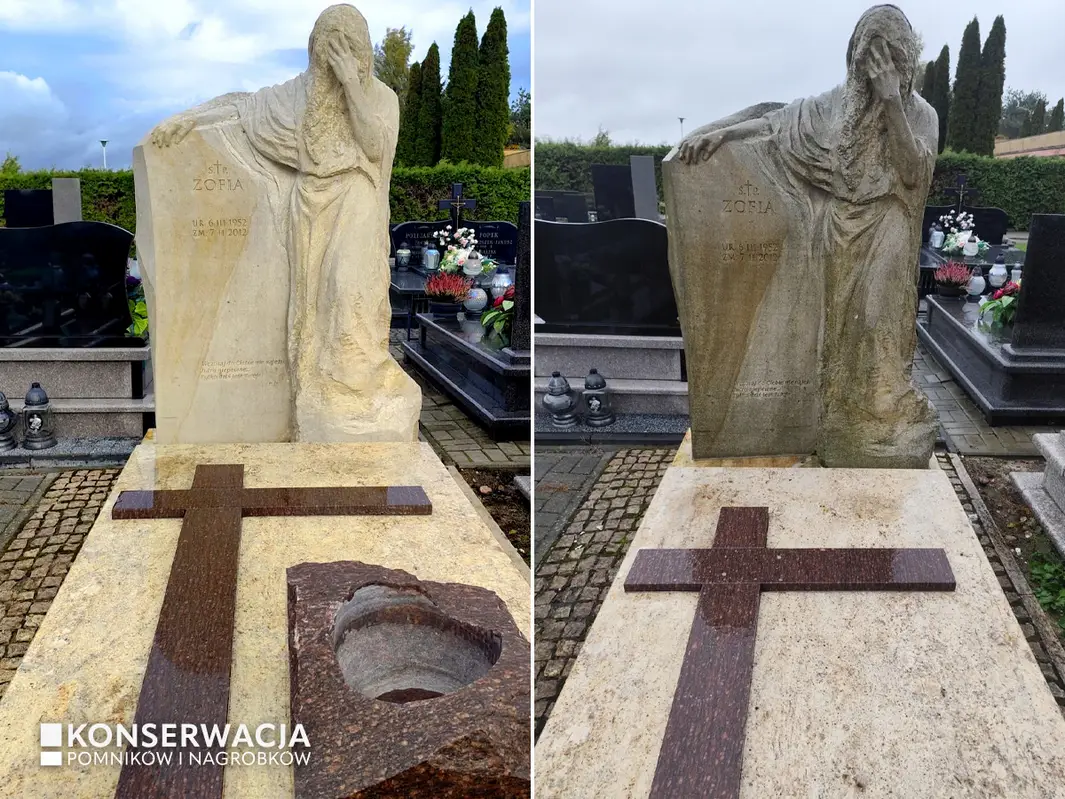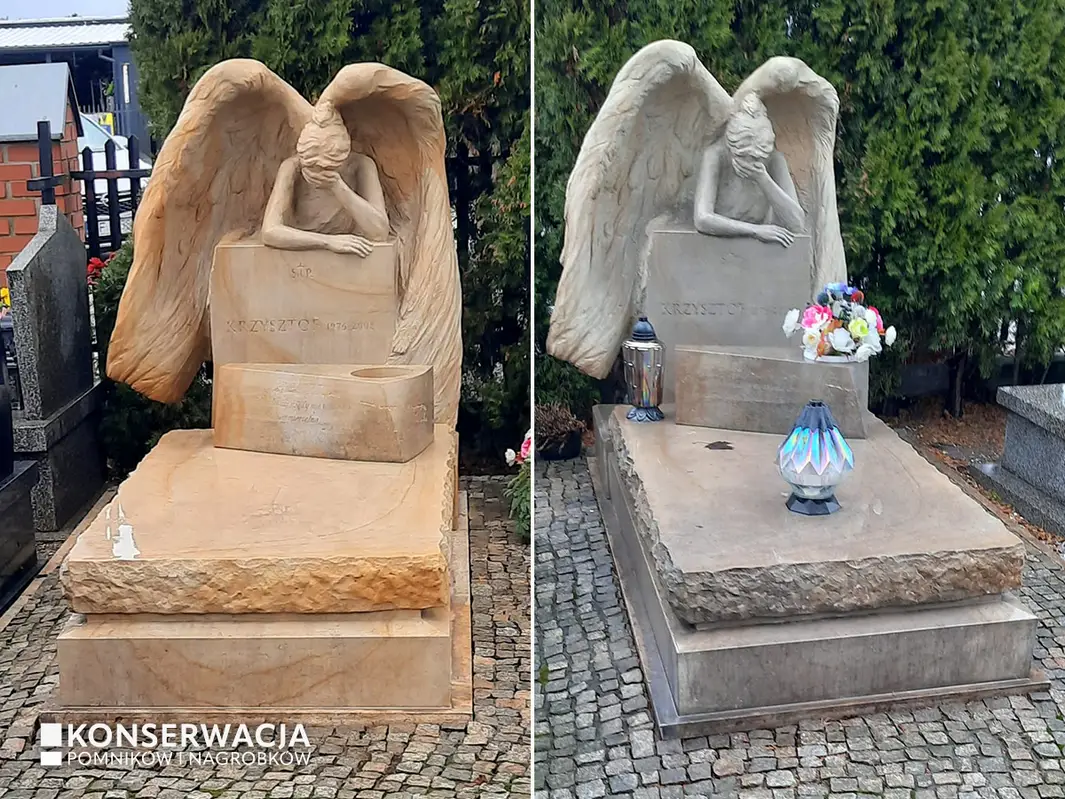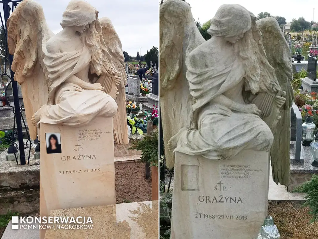 Z troską usuwamy porosty i mech, które mogłyby zasłonić piękno i zniszczyć pomnik.